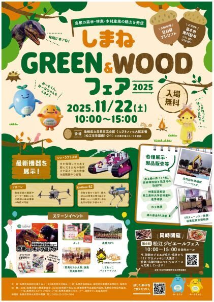 2025年11月22日に松江市くにびきメッセにて行われるイベント 「しまねGREEN&WOODフェア2025」に出展させていただきます。 タイヨー通信としては大きなドローンの展示や、ドローンの活用紹介をさせていただきます。 またAIさんいんとしては 色んなAIに触ってみたり、文章や画像を作ってみたり、 誰かに話したくなるAIの話ができればと考えております。 家族連れで気軽に参加できるイベントです。入場無料です。ご参加可能な方、是非ご参加ください。